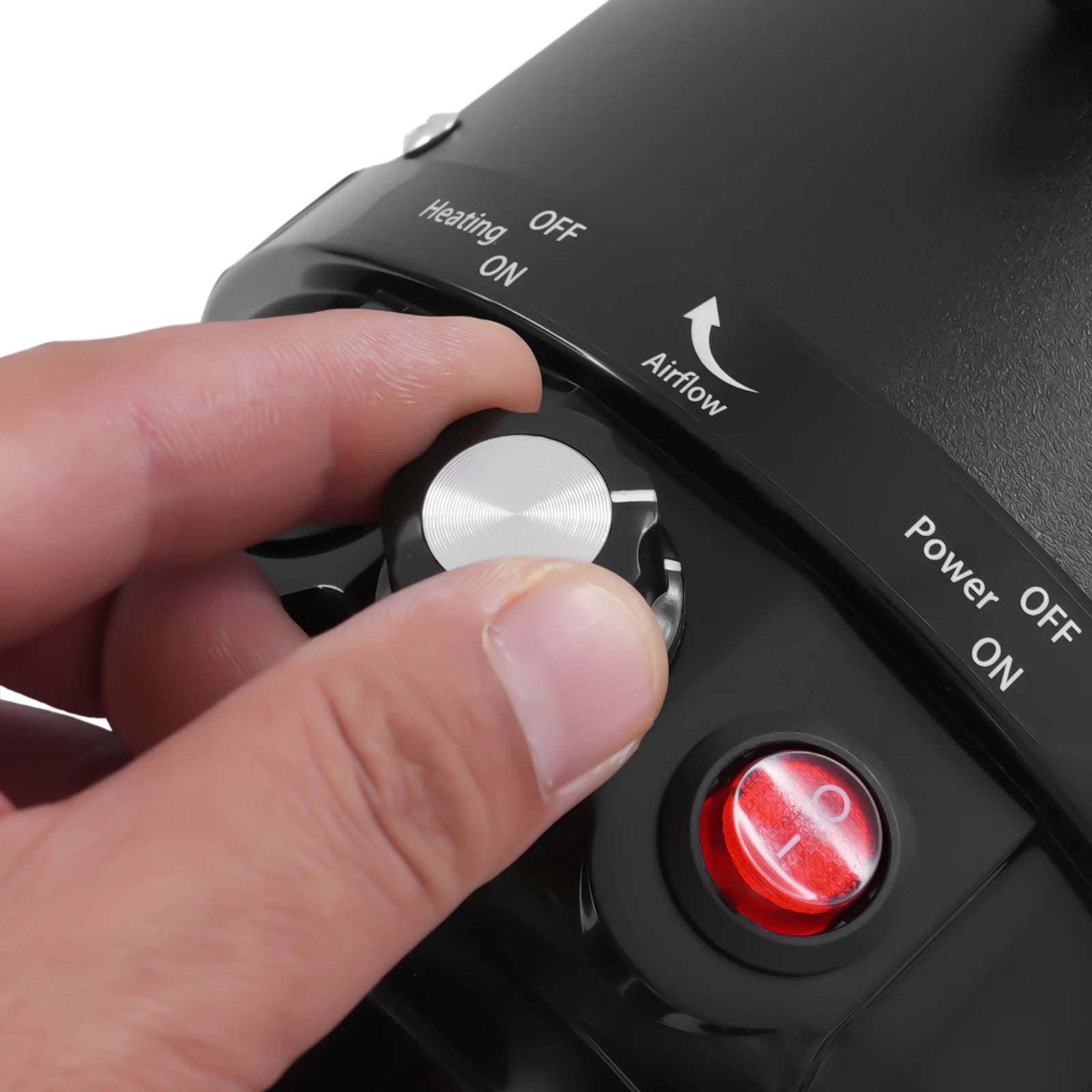 Adjustable Design: You can infinitely adjust the wind speed of the product within the range of 82.02-246.06ft/s through the wind speed knob, and can choose between two temperature levels of 86 ℉ and 131 ℉ to meet your different usage needs.