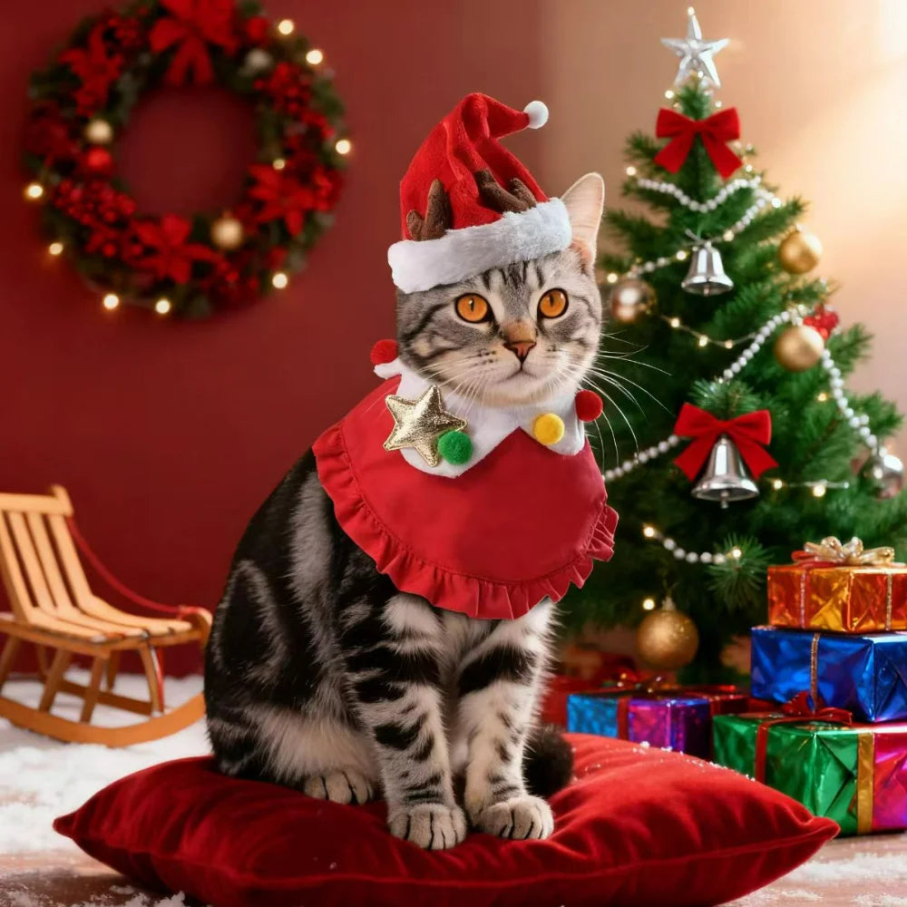 Pet Christmas Hat and Scarf Reindeer Set: Dog and Cat Hat and Bib Pet Supplies