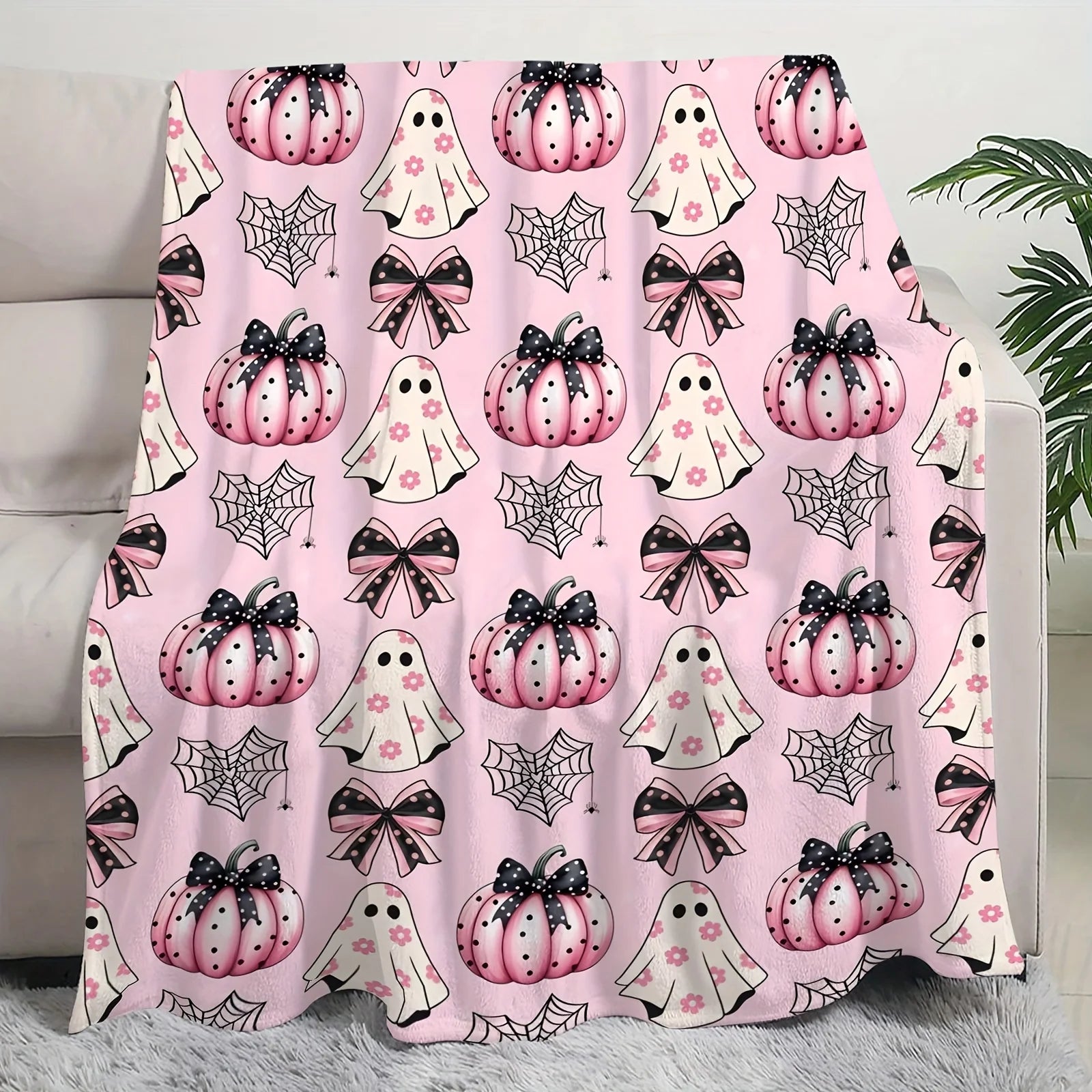 Cozy Pink Halloween Pumpkin Blanket Spooky Pumpkin Spider Web Designs Tear Resistant Machine Washable