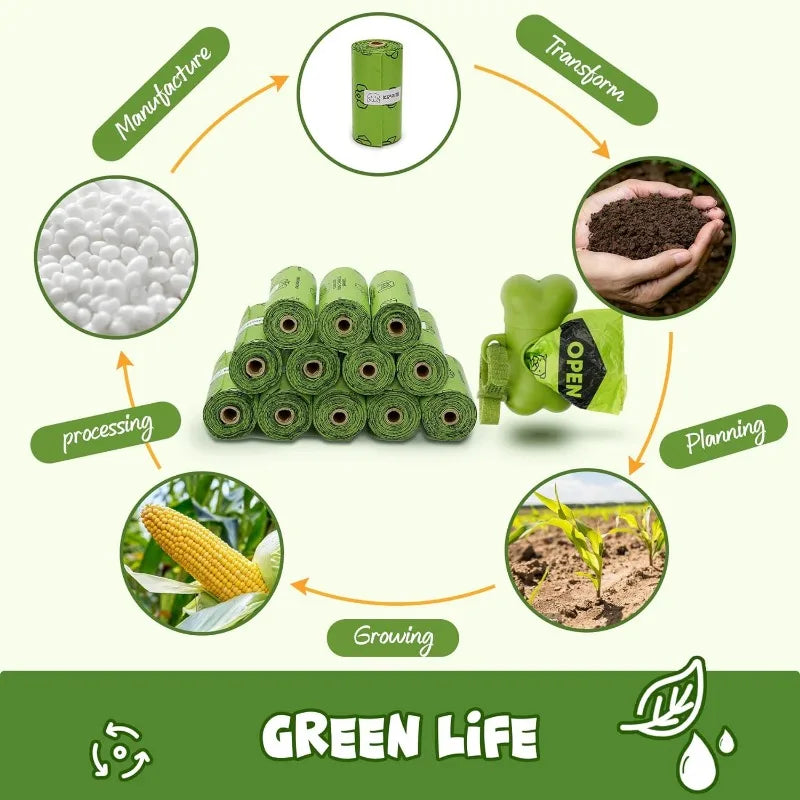 Dog Poop Bag Set with Dispenser & Leash Clip