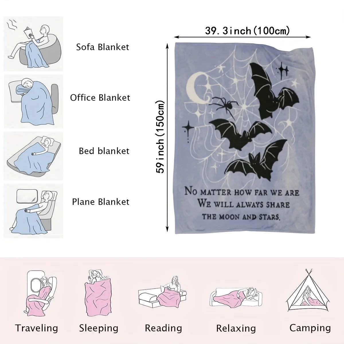 Halloween Bat Print Flannel Blanket - Machine Washable, All-Season Knit Polyester Cover, Versatile