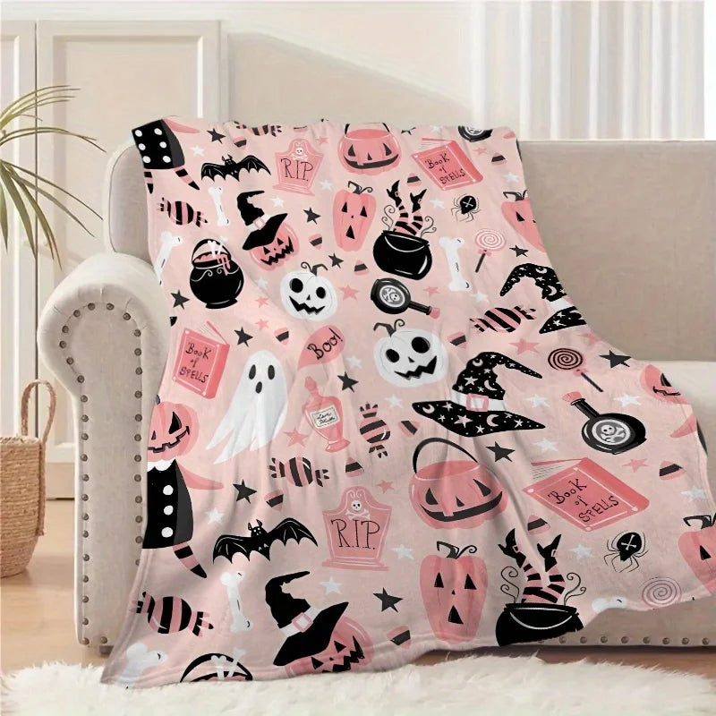 Halloween Pumpkin Theme Flannel Throw Blanket - Ultra-Soft,